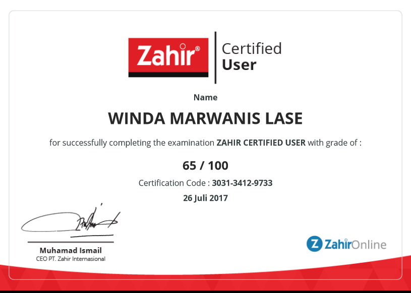 Certificate for User Winda Marwanis Lase